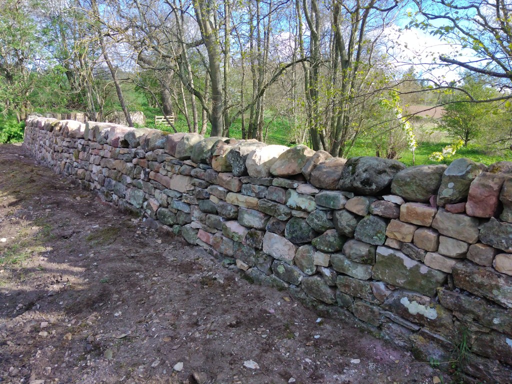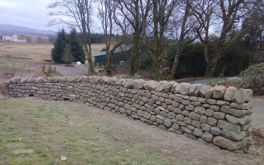 “We feel most fortunate, having decided to complete a stone wall on the farm boundary, to have discovered Lothian Drystone Walling at the Haddington show. From the moment Rosie and Stevie arrived on farm we felt confident in their skills. The resulting 50 metre wall, completed on schedule, is a masterpiece. Their skill, enthusiasm and work ethic is beyond reproach. We are hugely proud of our new stretch of wall which has been much commented on by passers by.”